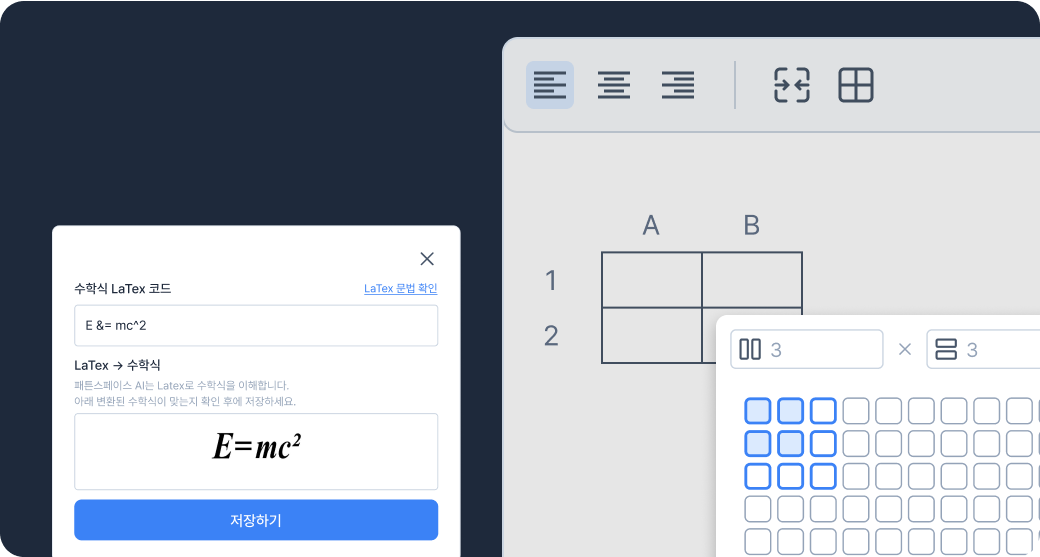 그리고 이번 v2.30 업데이트에서는 수학식/표 에디터, 최종 명세서 에디터 리뉴얼, AI 비서 개편 등 명세서 작성 및 검토에 필요했던 여러가지 기능들을 새롭게 선보입니다.