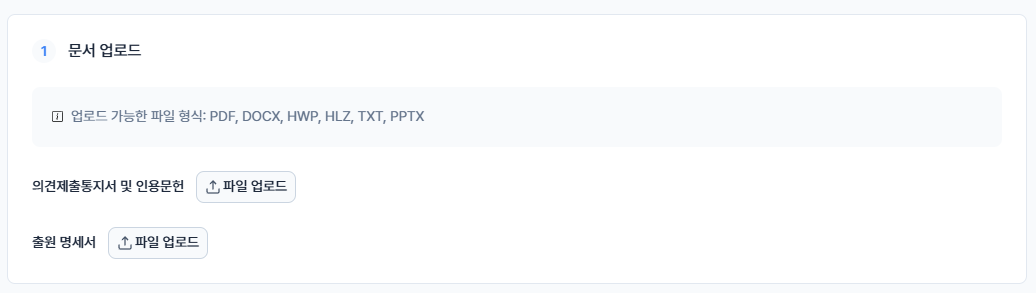 의견제출통지서, 인용문헌, 명세서를 입력하면 AI가 보정안을 추천하고, 이에 기반하여 의견서를 작성하는 서비스입니다.